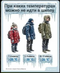 Морозы не за горами! Уважаемые родители! Напоминаем вам, что окончательное решение, отправлять ли ребенка на уроки в морозный день, остается за вами. Вы лучше всех знаете, насколько комфортно вашему ребенку будет добираться до школы.